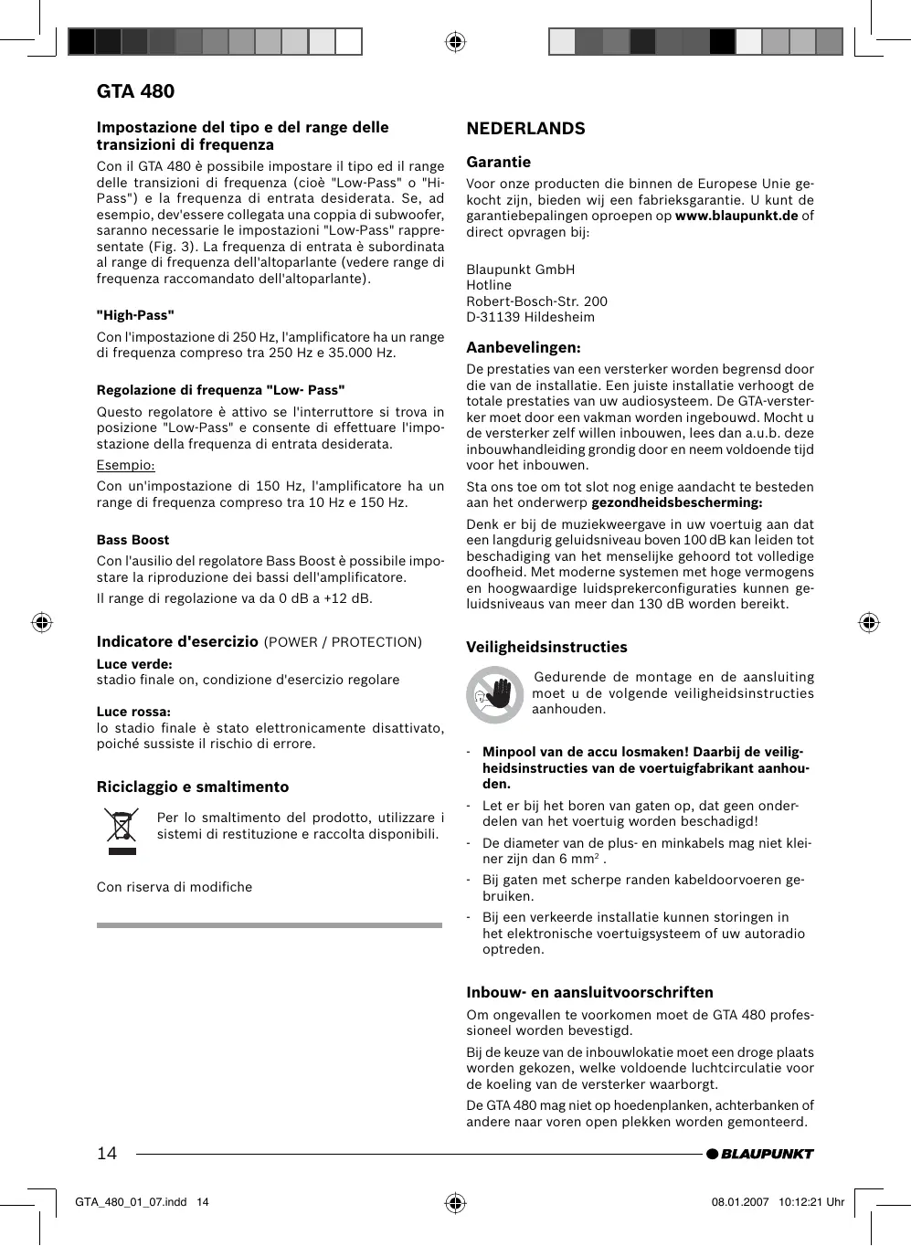 Download de handleiding voor uw Audioversterker in PDF-formaat gratis! Vind uw handleiding GTA 480 - BLAUPUNKT en neem uw elektronisch apparaat weer in handen. Op deze pagina staan alle documenten die nodig zijn voor het gebruik van uw apparaat. GTA 480 van het merk BLAUPUNKT.
