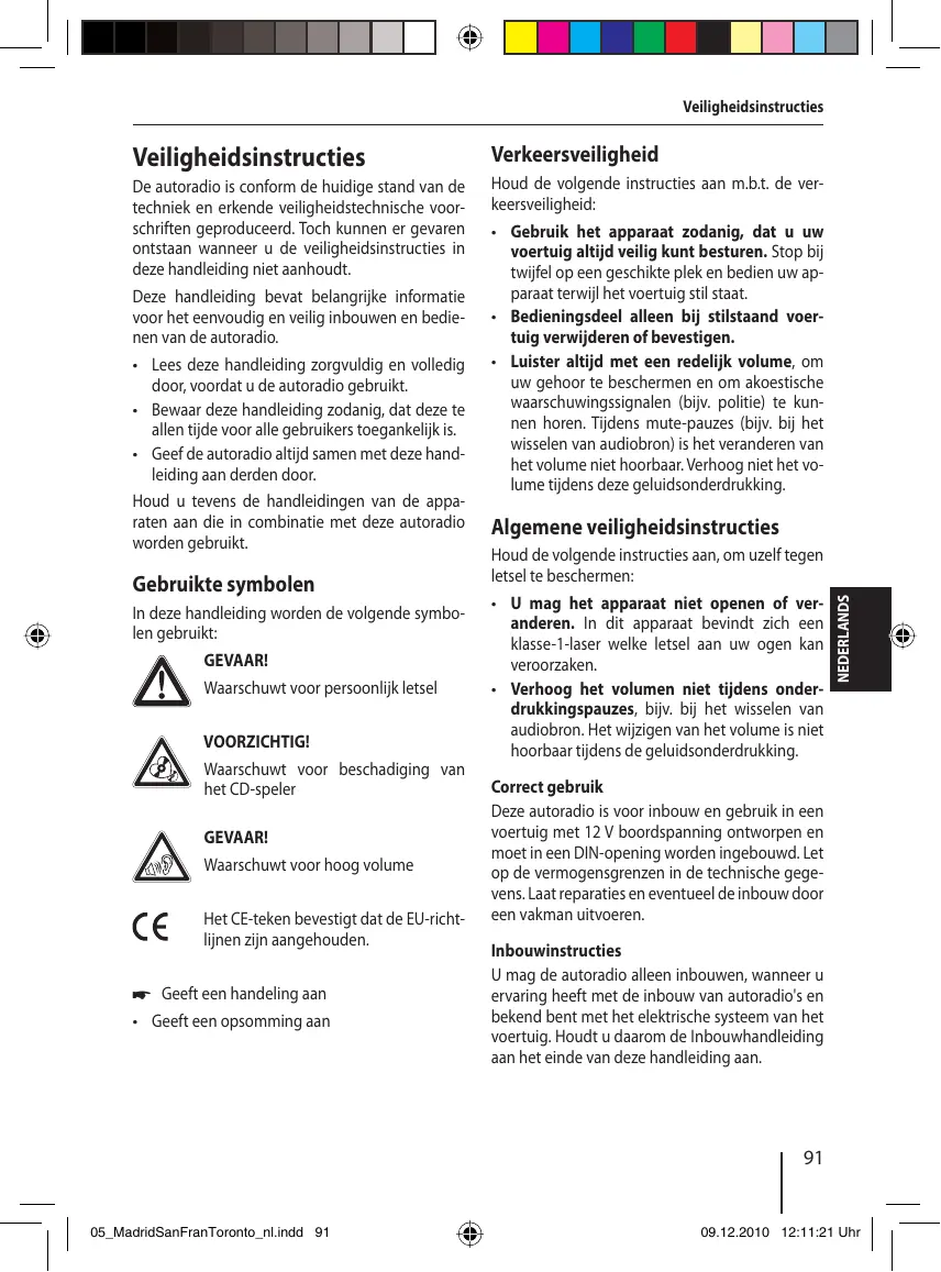 De autoradio is conform de huidige stand van de techniek en erkende veiligheidstechnische voorschriften geproduceerd. Toch kunnen er gevaren ontstaan wanneer u de veiligheidsinstructies in deze handleiding niet aanhoudt. Deze handleiding bevat belangrijke informatie voor het eenvoudig en veilig inbouwen en bedienen van de autoradio. • Lees deze handleiding zorgvuldig en volledig door, voordat u de autoradio gebruikt. • Bewaar deze handleiding zodanig, dat deze te allen tijde voor alle gebruikers toegankelijk is. • Geef de autoradio altijd samen met deze handleiding aan derden door.