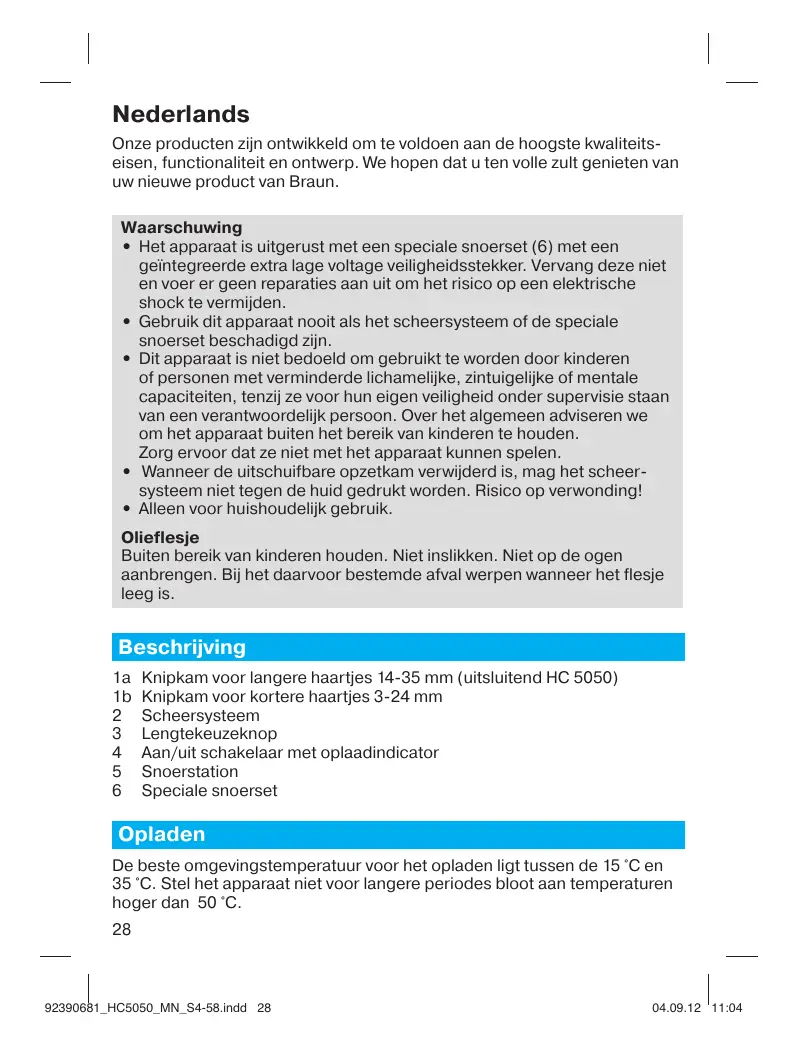GEBRUIKSAANWIJZING HC5050 BRAUN