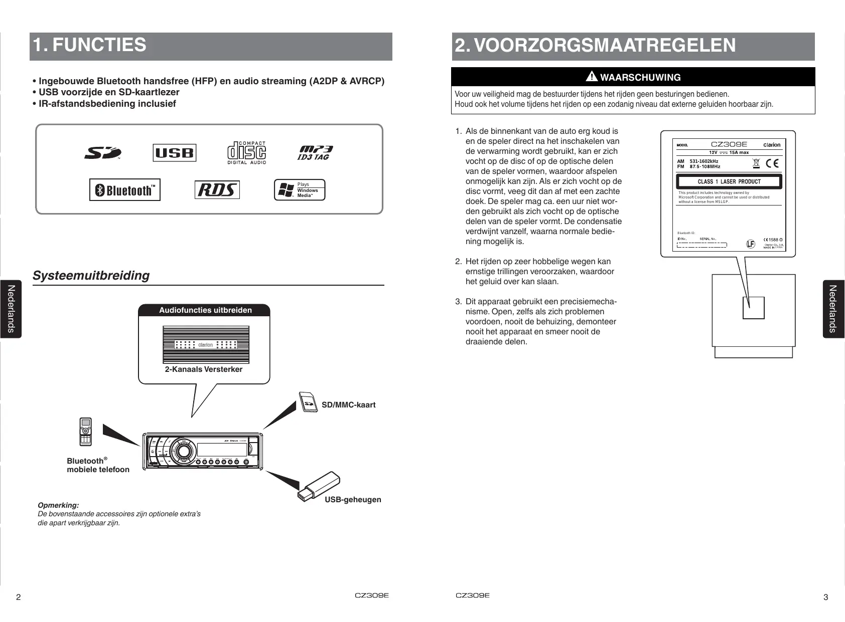 GEBRUIKSAANWIJZING CZ309E CLARION