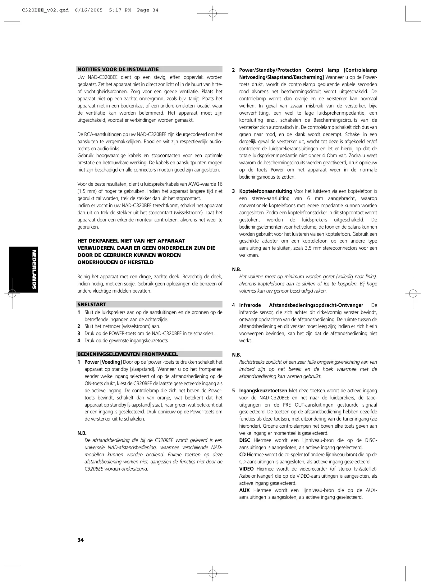 GEBRUIKSAANWIJZING C320BEE NAD