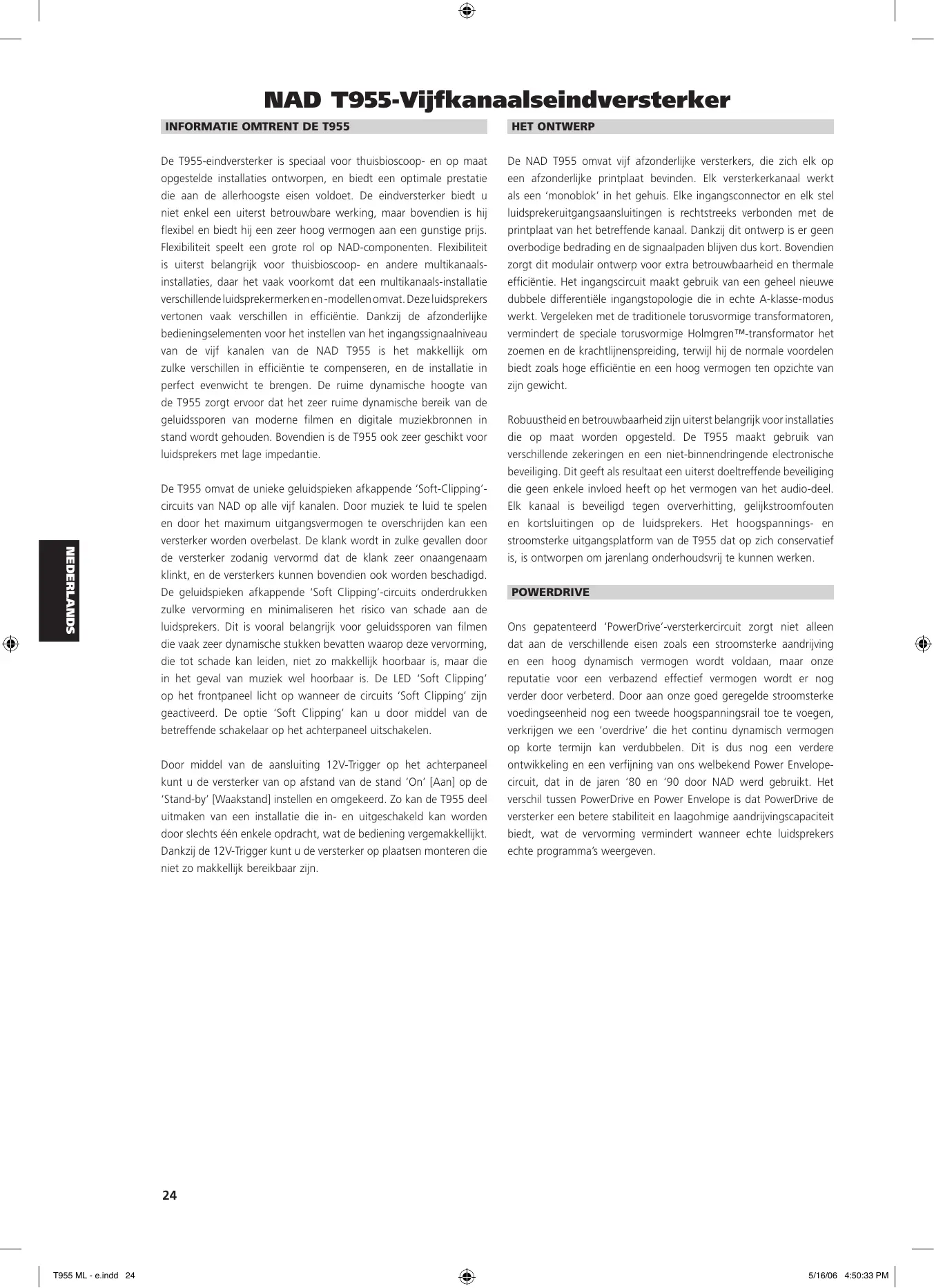 Vind de handleiding van het apparaat gratis T955 NAD in PDF-formaat.