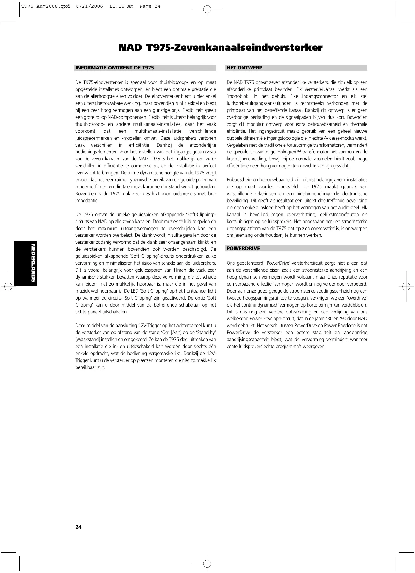 Vind de handleiding van het apparaat gratis T975 NAD in PDF-formaat.