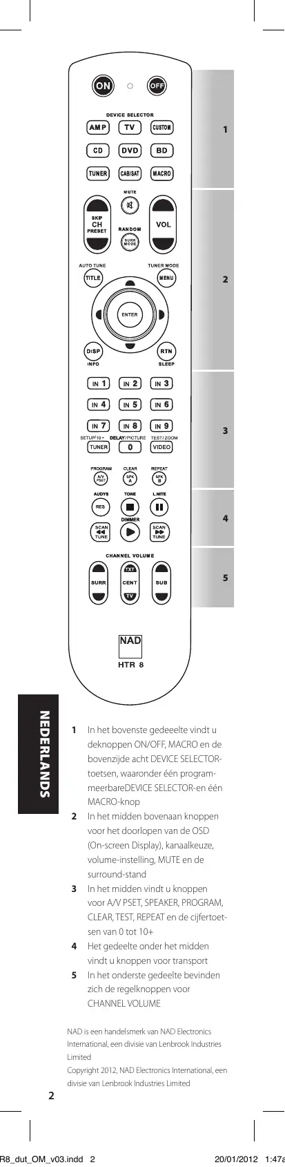 Vind de handleiding van het apparaat gratis HTR8 LEARNING REMOTE CONTROL NAD in PDF-formaat.