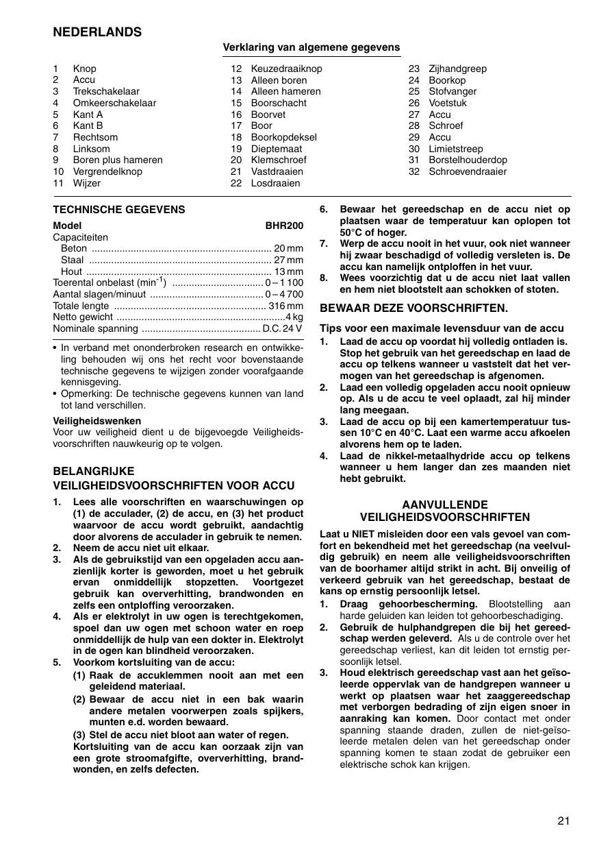 GEBRUIKSAANWIJZING BHR200WAE MAKITA
