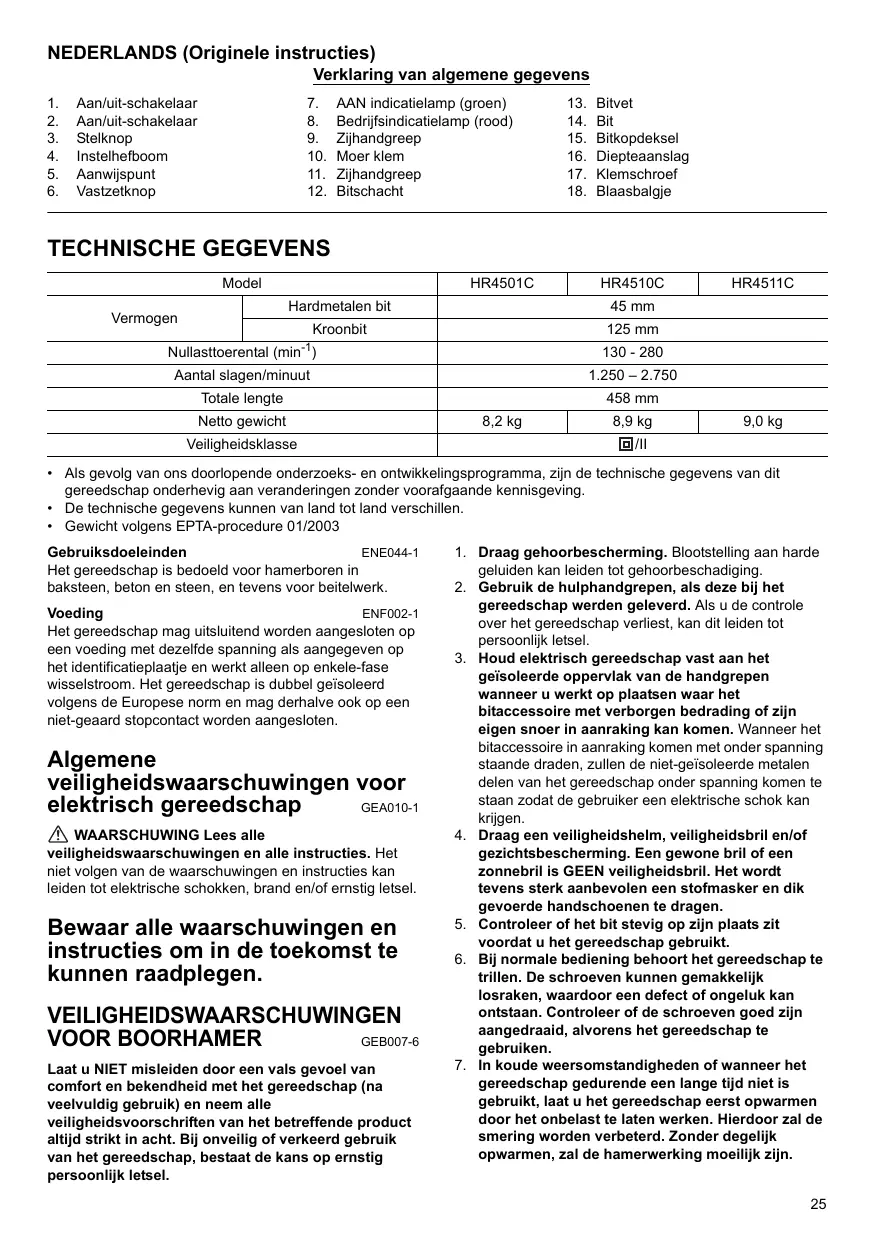 - Als gevolg van ons doorlopende onderzoeks- en ontwikelingsprogramma, zijn de technische gegevens van dit gereedschap onderhevig aan veranderingen zonder voorafgaande kennisgeving.