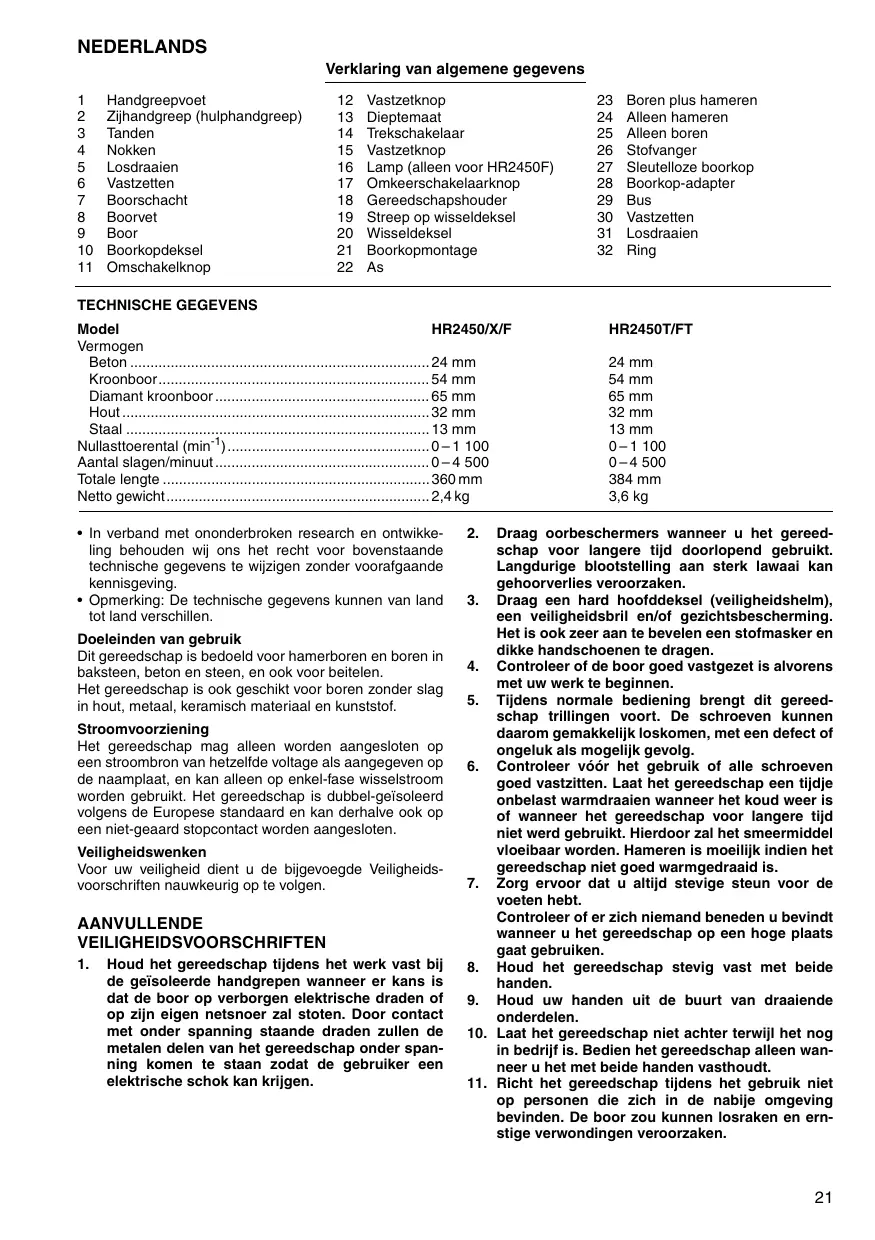 GEBRUIKSAANWIJZING HR2450X8 MAKITA