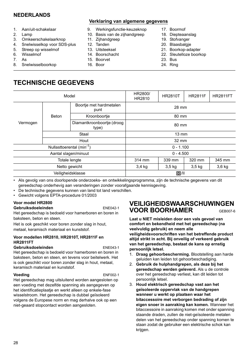 GEBRUIKSAANWIJZING HR2810T MAKITA