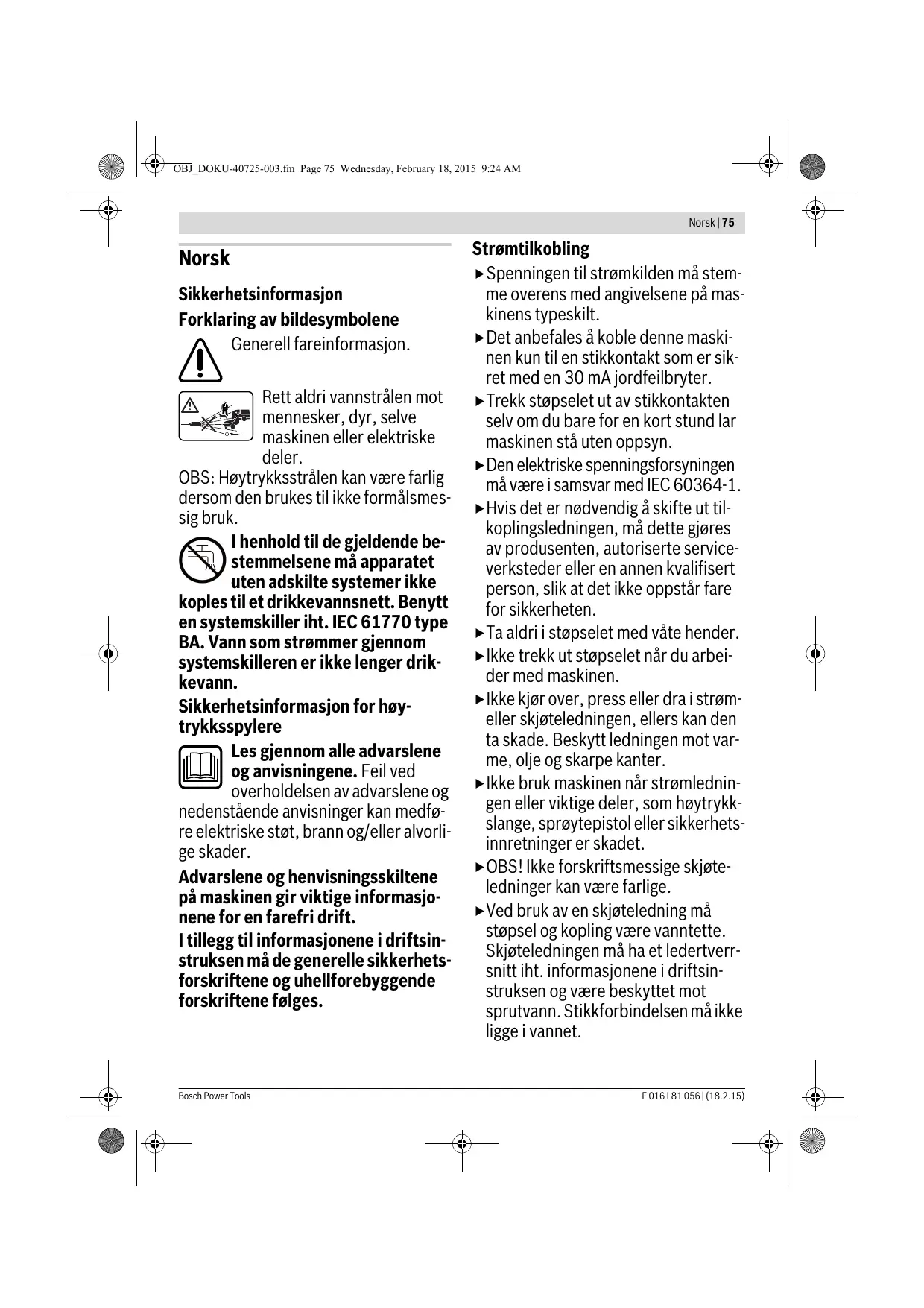 Formålsmessig bruk Maskinen er beregnet til rengjøring av utendørs flater og objekter, for maskiner, kjøretøy og båter, hvis det tilsvarende tilbehøret brukes, som f.eks. et rengjøringsmiddel som er godkjent av Bosch. Den er beregnet til bruk i en omgivelsestemperatur på mellom 0 °C og 40 °C. Dette produktet er ikke egnet for yrkesmessig bruk. Lavt trykk Høyt trykk Tilbehør Tekniske data Høytrykkspyler Produktnummer Opptatt effekt Temperatur innløp max. Vannmengde innløp min. Tillatt trykk Nominelt trykk Gjennomstrømning Maksimalt inngangstrykk Autostopp-funksjon Vekt tilsvarende EPTA-Procedure 01/2003 Beskyttelsesklasse Serienummer AQT 42-13