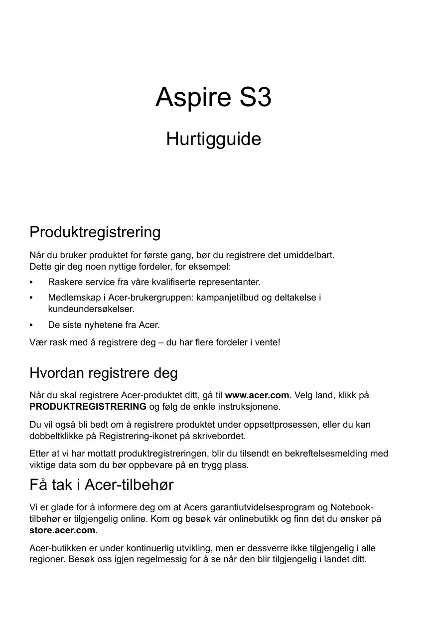 Hvis du vil vite mer om hvordan datamaskinen kan gjøre deg mer produktiv, kan du slå opp i Aspire S3-brukerhandboken. Aspire S3-