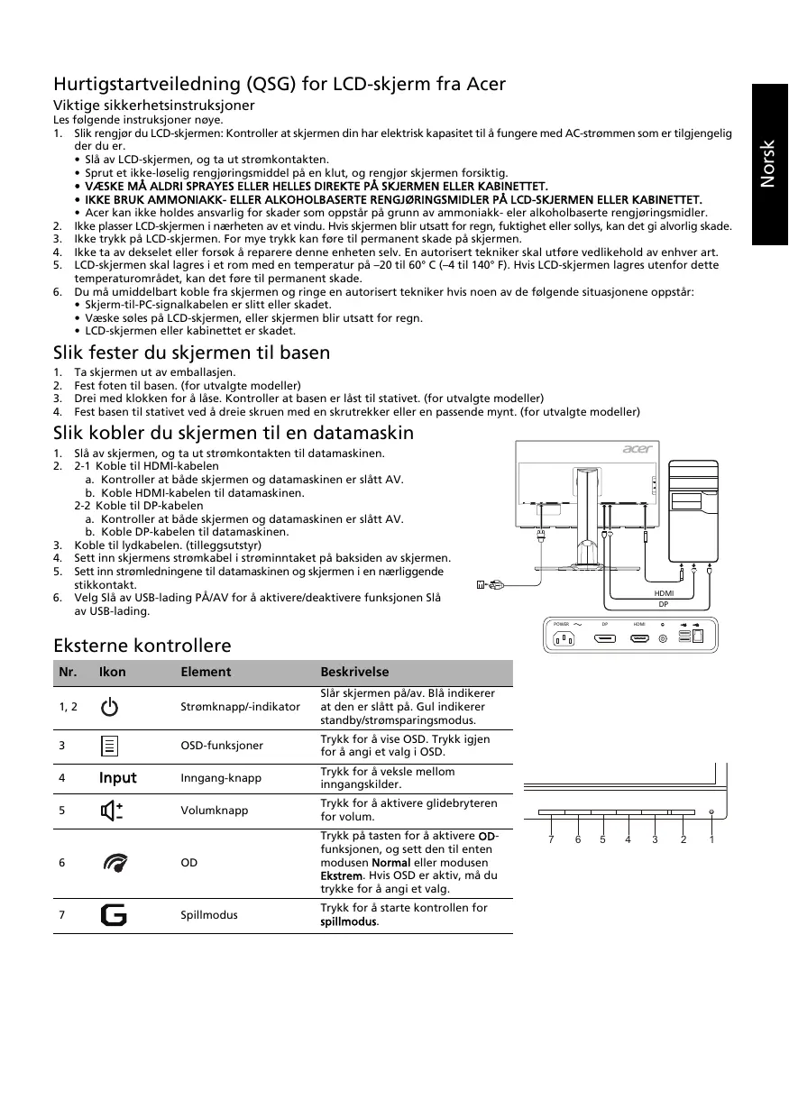 Last ned instruksjonene for din Spillskjerm i PDF-format gratis! Finn veiledningen din XB271HU - ACER og ta den elektroniske enheten tilbake i hendene. På denne siden er alle dokumenter som er nødvendige for bruken av enheten din publisert. XB271HU av merket ACER.
