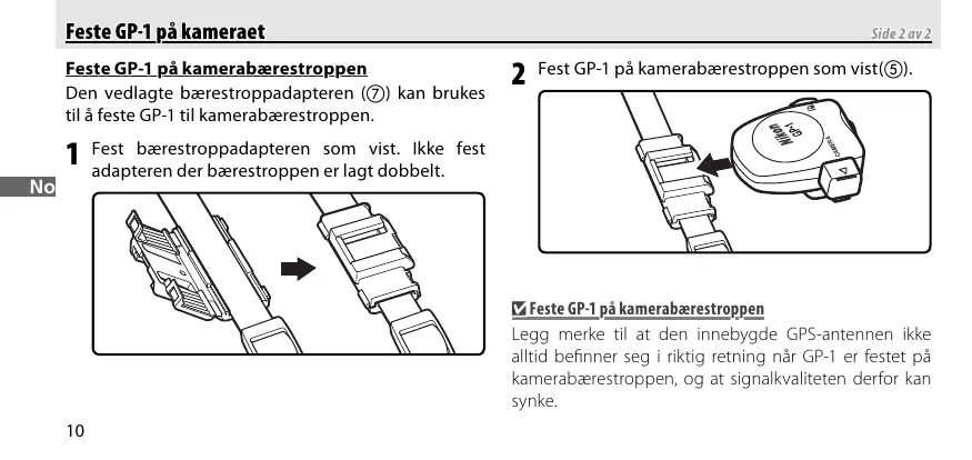 Et D GP-1 paigaldamine kaamera rihma külge Pidage meeles, et sisseehitatud GPS-antenn võib vahepeal olla vales suunas, kui GP-1 on paigaldatud kaamera rihma külge, ja signaali kvaliteet võib selle tulemusena langeda.