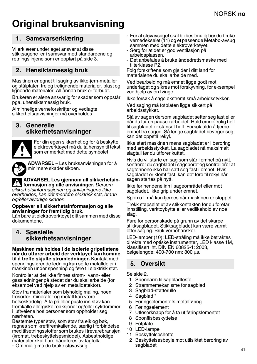 Last ned instruksjonene for din Stikksag i PDF-format gratis! Finn veiledningen din STE 90 SCS, STE 90 SCS - METABO og ta den elektroniske enheten tilbake i hendene. På denne siden er alle dokumenter som er nødvendige for bruken av enheten din publisert. STE 90 SCS, STE 90 SCS av merket METABO.