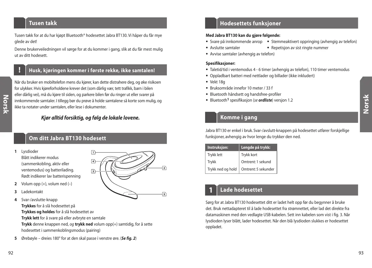 Tusen takk for at du har kjøpt Bluetooth® hodesettet Jabra BT130. Vi håper du får mye glede av det!
