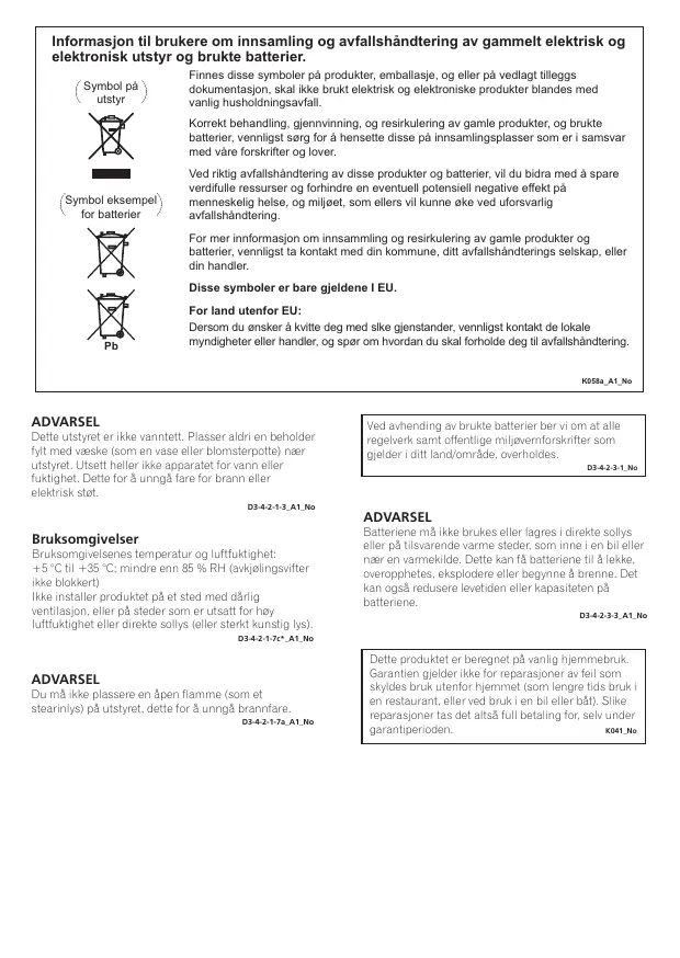 Informasjon til brukere om innsamling og avfallshändtering av gammelt elektrisk og k utstyr og brukte batterier.