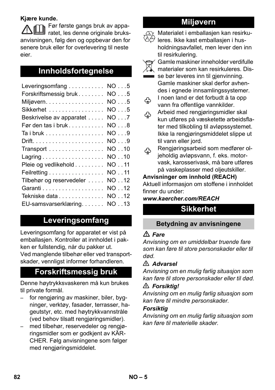 K4 COMPACT, K4 - Høytrykkspyler KARCHER - Notice d'utilisation et mode d'emploi gratuit
