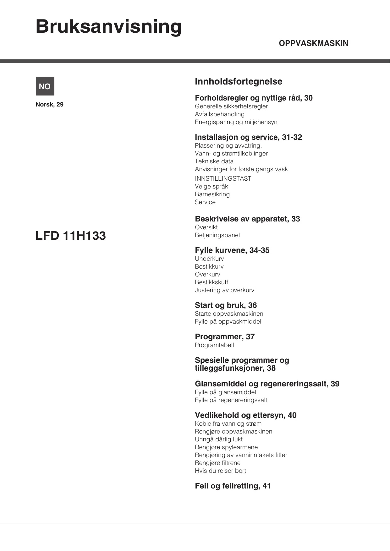 BRUKSANVISNING LFD 11H133 X DE/SK HOTPOINT