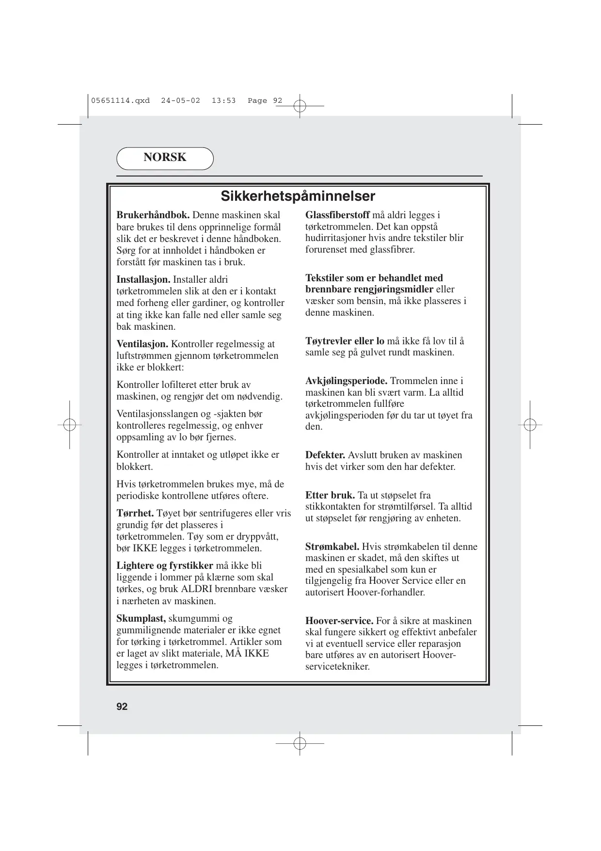 Téléchargez la notice de votre Tørketrommel au format PDF gratuitement ! Retrouvez votre notice TVE43 - HOOVER et reprennez votre appareil électronique en main. Sur cette page sont publiés tous les documents nécessaires à l'utilisation de votre appareil TVE43 de la marque HOOVER.