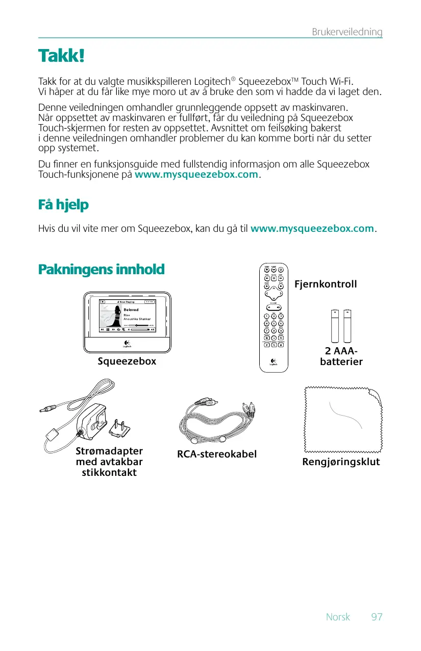 BRUKSANVISNING SQUEEZEBOX TOUCH LOGITECH