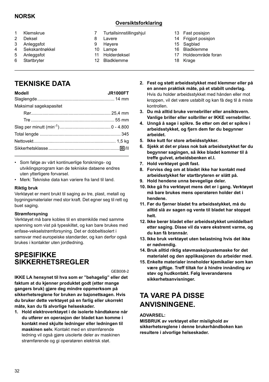 BRUKSANVISNING JR1000FT MAKITA