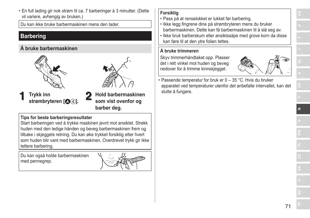 DK Du kan ikke bruke barbermaskinen mens den lader.