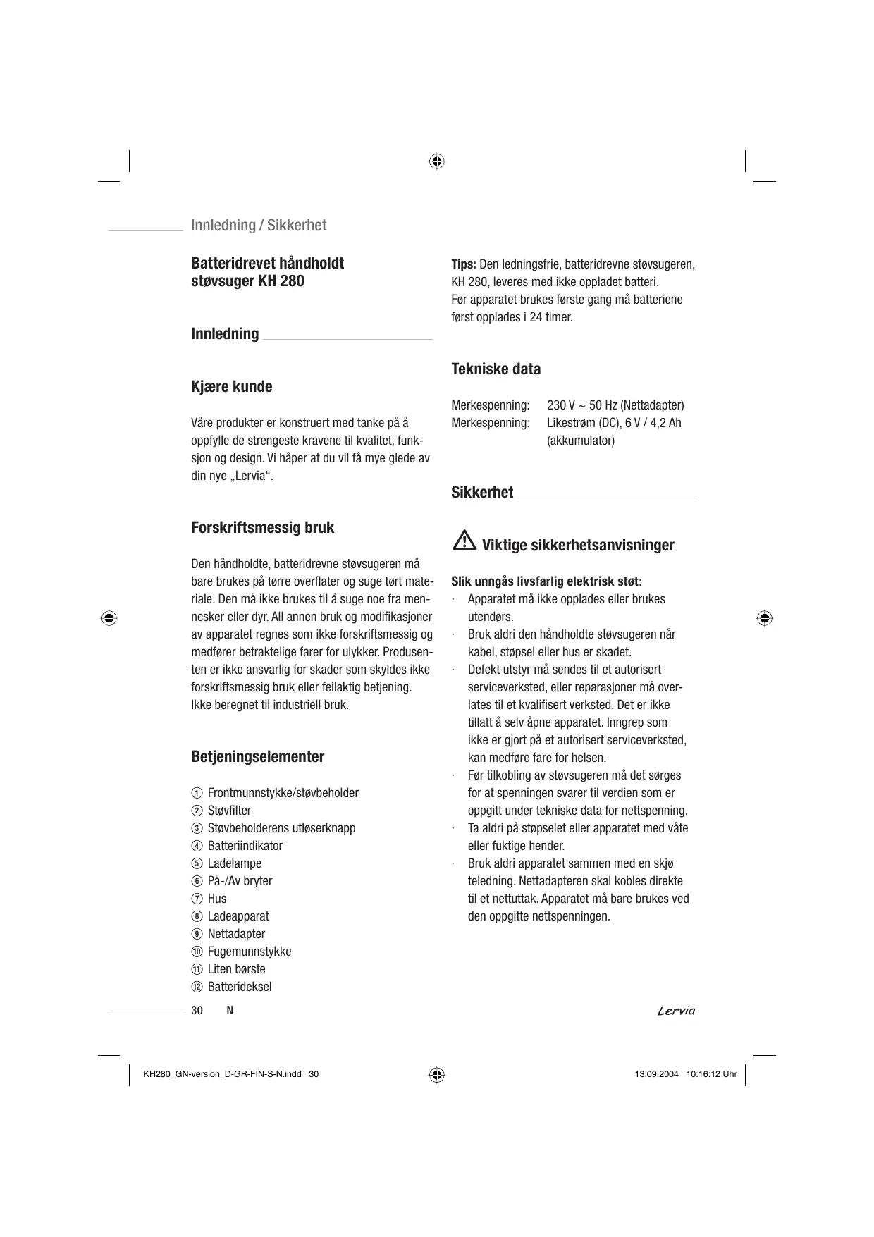 BRUKSANVISNING KH 280 LERVIA