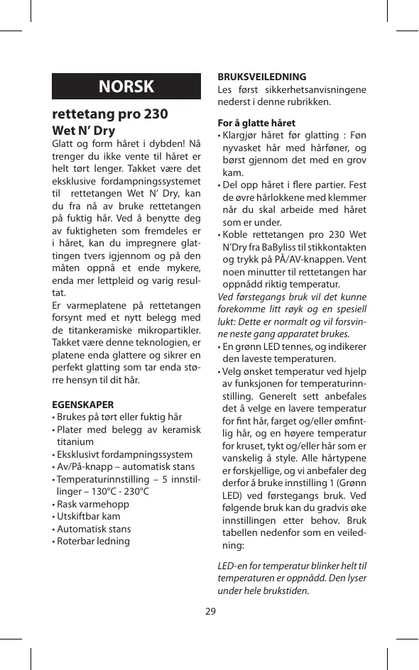 BRUKSANVISNING ST30E BABYLISS
