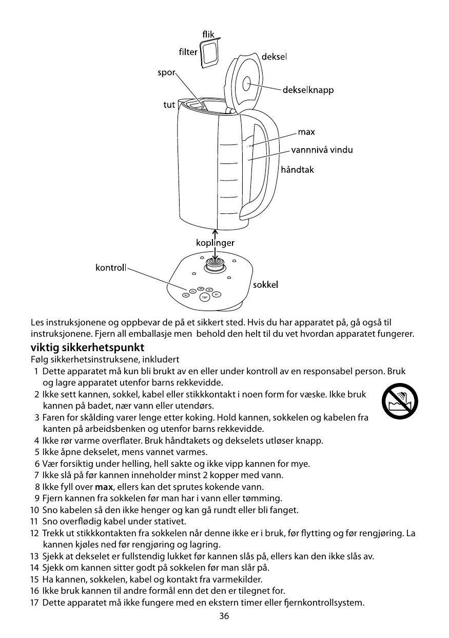 16 N'utilisez pas la bouilloire autrement que pour faire bouillir de l'eau.