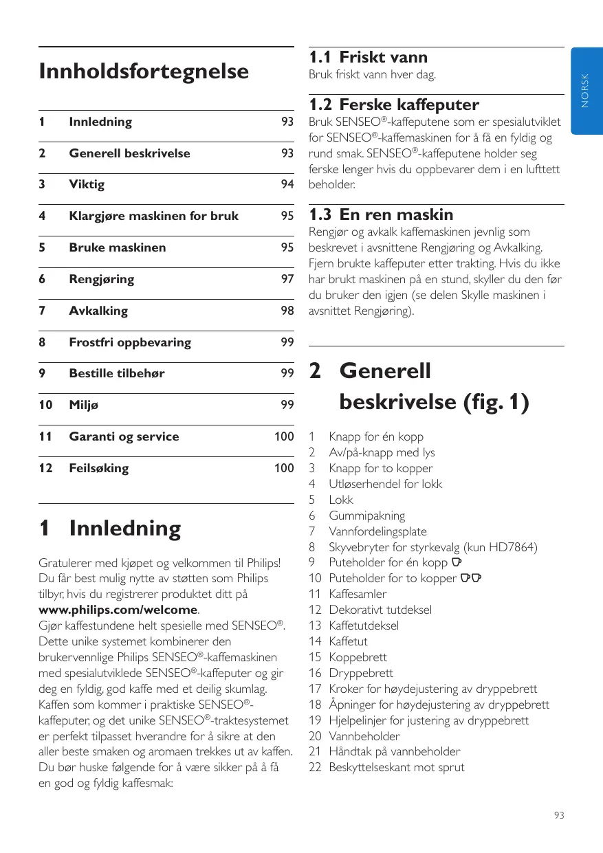 Finn enhetens veiledning gratis QUADRANTE HD7864/11 SENSEO i PDF-format.