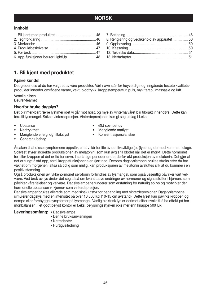 Attention • En cas de prise de médicaments tels que des sédatifs, des anti-hypertenseurs et des antidépresseurs, il convient de demander l’avis du médecin concernant l’utilisation de la lampe à lumière du jour. • Pour les personnes souffrant de maladies de la rétine tout comme pour les diabétiques, il est recommandé, avant l’utilisation de la lampe à lumière du jour, de se faire examiner par un ophtalmologue. • Veuillez ne pas utiliser l’appareil dans le cas d’affections oculaires telles que cataracte, glaucome, affections du nerf optique en général et dans le cas d’inflammations du corps vitré. • En cas de problèmes de santé quelconques, veuillez consulter votre médecin traitant. • L’emballage doit être retiré avant l’utilisation de l’appareil. • Les ampoules sont exclues de la garantie.