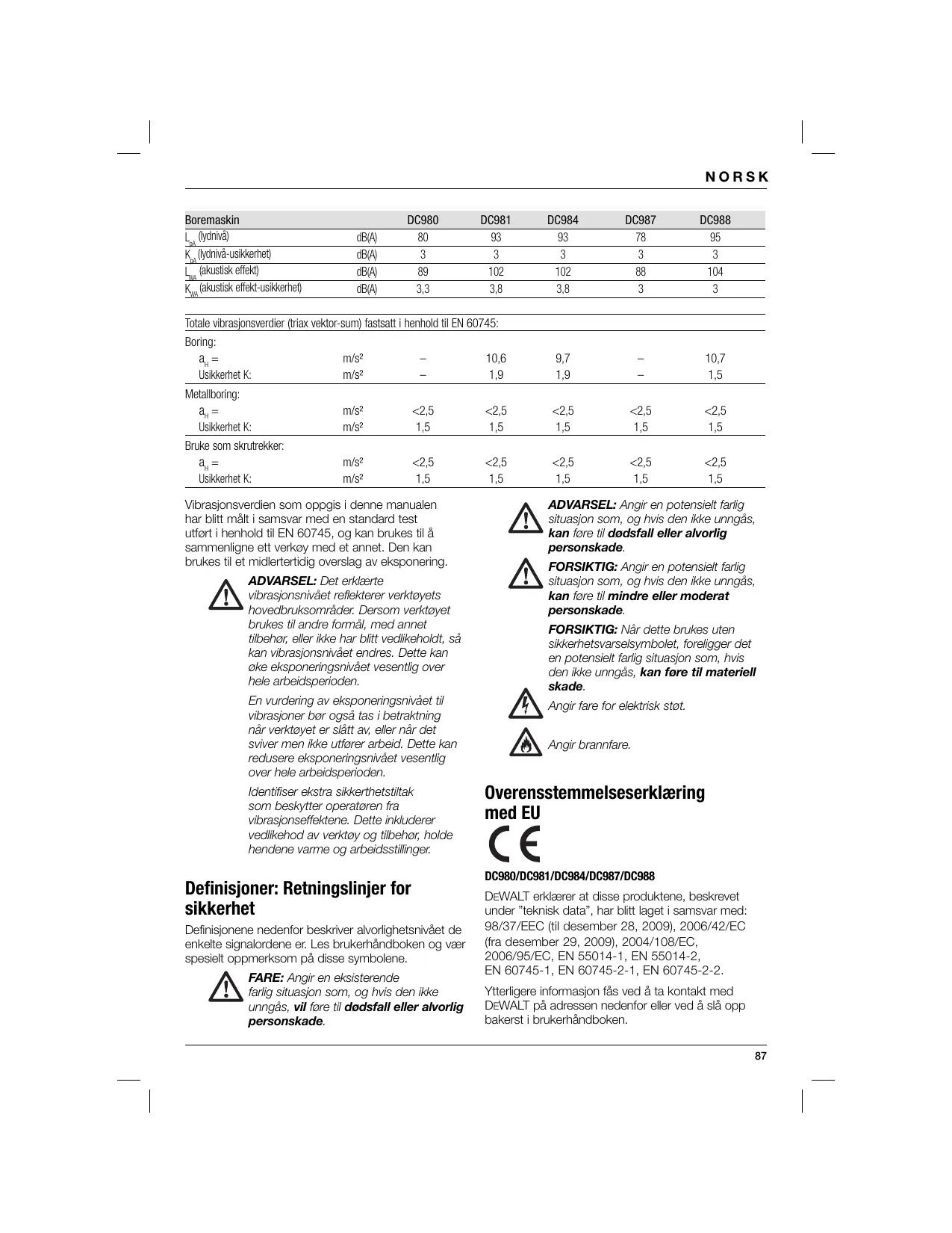 NORSK g) Hvis verktoyet har tilkopling for stovoppsamier eller stovavsug, skal du päse at disse er tikoplet og brukes pä riktig mäte. Bruk av stovoppsamler kan redusere farer som er forbundet med stov.