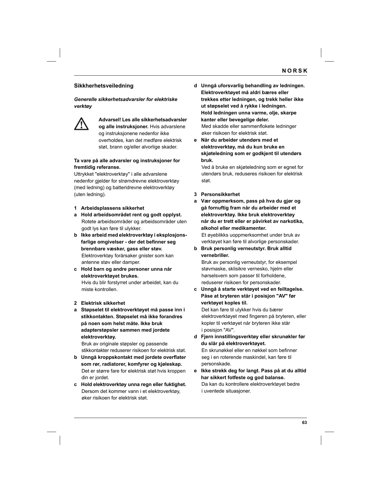c Hold barn og andre personer unna narelektroverktoyet brukes. Hvis du blir forstyret under arbeidet, kan du miste kontrollen.