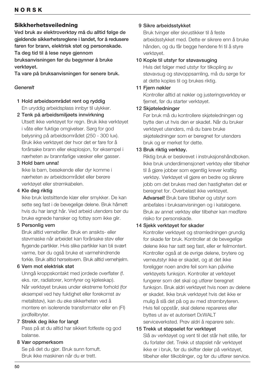 För mer information ombeds ni kontakta DEWALT på nedanstående adress eller se baksidan av manualen. Ljudnivån överensstämmer med Europeiska Gemenskapens bestämmelser 86/188/EEG & 98/37/EEG, uppmätt enligt EN 50144: EN 50144’e uygun ölçümlendiğinde, ses şiddeti seviyesi 86/188/EEC & 98/37/EEC’ye uygundur: