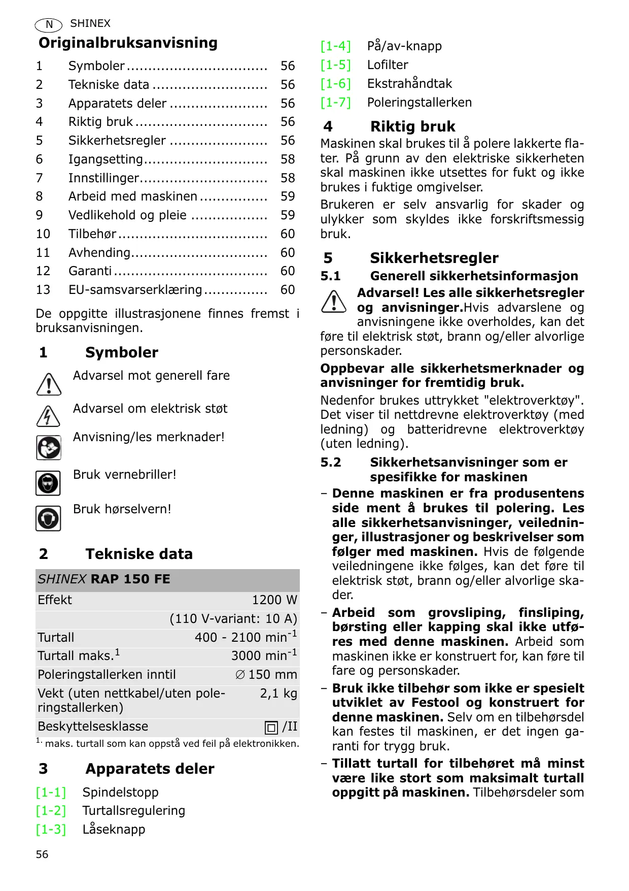 BRUKSANVISNING SHINEX RAP 150 FE FESTOOL