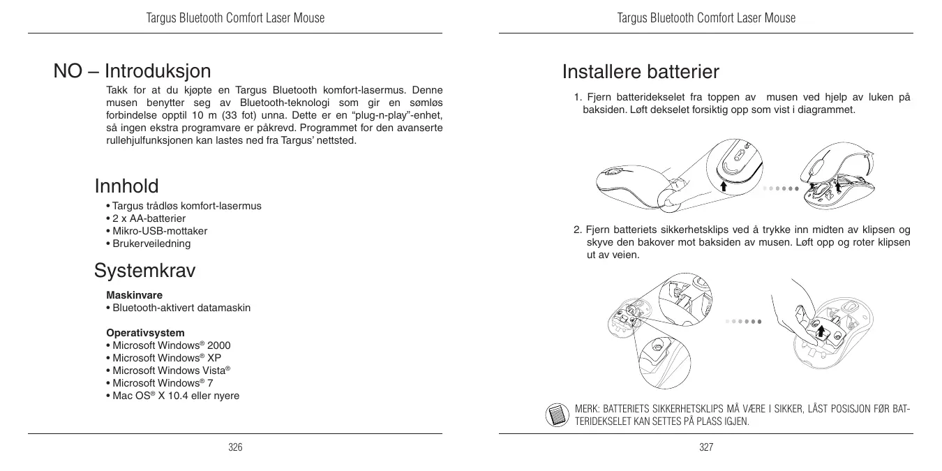 BLUETOOTH COMFORT LASER MOUSE - Bluetooth-mus TARGUS - Notice d'utilisation et mode d'emploi gratuit