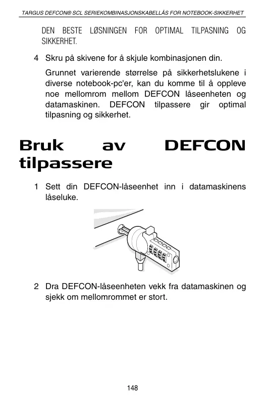 BRUKSANVISNING NOTEBOOK SECURITY DEFCON SCL TARGUS
