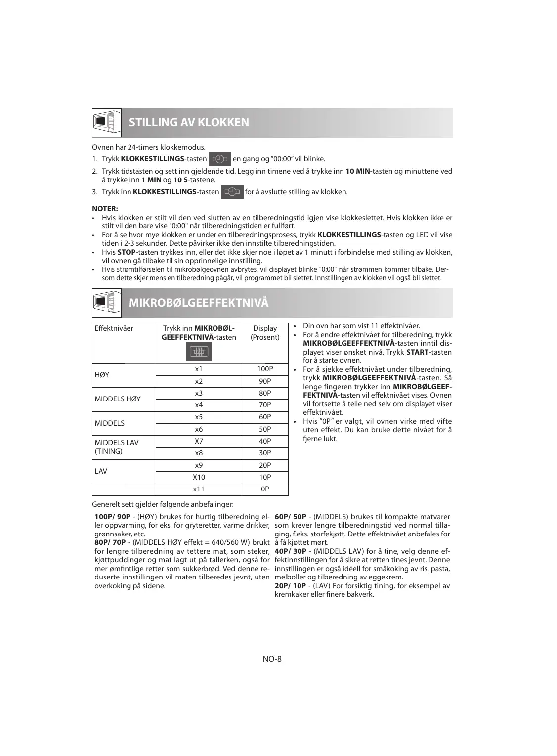 - Indtast effektniveauut (80P) ved at trykke 3 gange pa tasten MIKROBOLGEEFFEKT.