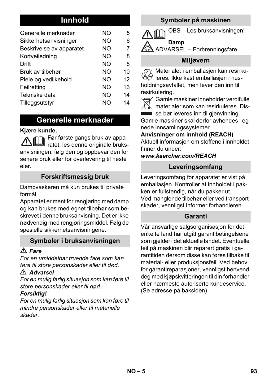 Kurzanleitung DE 8 Betrieb DE 8 Anwendung des Zubehôürs DE 10 Pflege und Wartung DE 12 Hilfe bei Storungen DE 13 Technische Daten DE 14 Sonderzubehôr DE 15