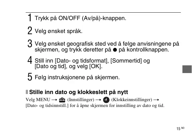Velg MENU (Innstlinger) (Klokkeinnstlinger) [Dato- og tidsinnstill.] for Åpne skjernen for instnilling av dato og tid.