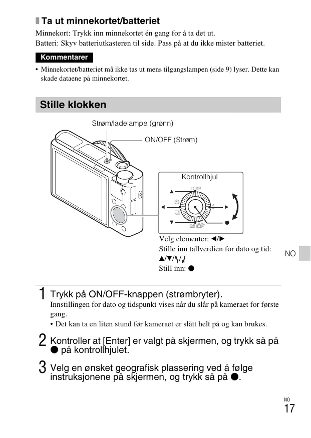 - Det kan ta en liten stund før kameraet er slått helt på og kan brukes. at [Enter] er valgt på skjermen, og trykk så på 2 Kontroller z på kontrollhjulet. en ønsket geografisk plassering ved å følge 3 Velg instruksjonene på skjermen, og trykk så på z.