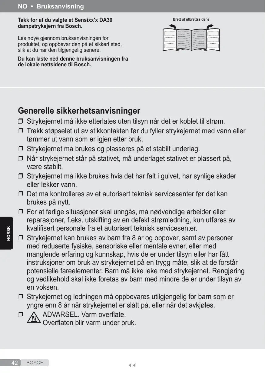 Takk for at du valgte et Sensixx'x DA30 Brett ut utbrettssidene dampstrykejern fra Bosch.