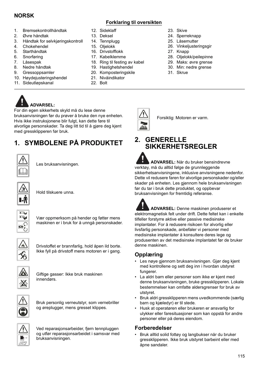 • Ne faites pas tourner le moteur dans un lieu confiné, en raison de la possibilité de dangereuses émanations de monoxyde de carbone. • Tondez uniquement à la lumière du jour ou dans une lumière artificielle de bonne qualité. • Évitez de tondre de l’herbe mouillée, si possible. • Assurez vos pas dans les pentes. • Marchez, ne courez jamais. • Pour les machines rotatives à roues, tondez les pentes dans le sens transversal, jamais en montant ou en descendant. • Soyez particulièrement prudent lors des changements de direction sur les terrains en pente. • Ne coupez pas l’herbe sur des pentes excessivement raides. • Faites particulièrement attention lorsque la tondeuse doit être tirée vers vous. • Arrêtez la/les lame(s) si la tondeuse thermique doit être inclinée pour le transport, lorsque vous traversez des zones sans herbe et lors des déplacements entre les surfaces à tondre. • N’utilisez jamais la tondeuse si ses protecteurs sont endommagés, ou en l’absence de dispositifs de sécurité, comme le déflecteur ou le sac de ramassage. • Ne changez pas les réglages du gouverneur du moteur et ne forcez pas le moteur. • Désengagez les lames et les vitesses avant de démarrer le moteur.