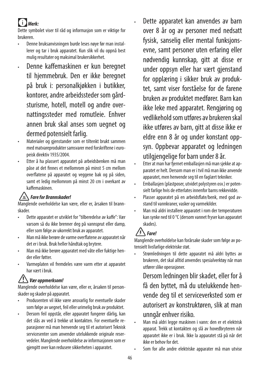 Le non-respect peut entraîner des blessures ou des dommages à l’appareil. • Le fabricant ne peut être tenu pour responsable des dommages dus à une utilisation anormale, non conforme ou déraisonnable. • En cas de panne ou de mauvais fonctionnement débranchez l’appareil. Pour toute réparation, adressez-vous exclusivement à un Centre de service agréé par le Fabricant et exigez des pièces détachées d’origine. Le non-respect de ces recommandations peut compromettre la sécurité de l’appareil.