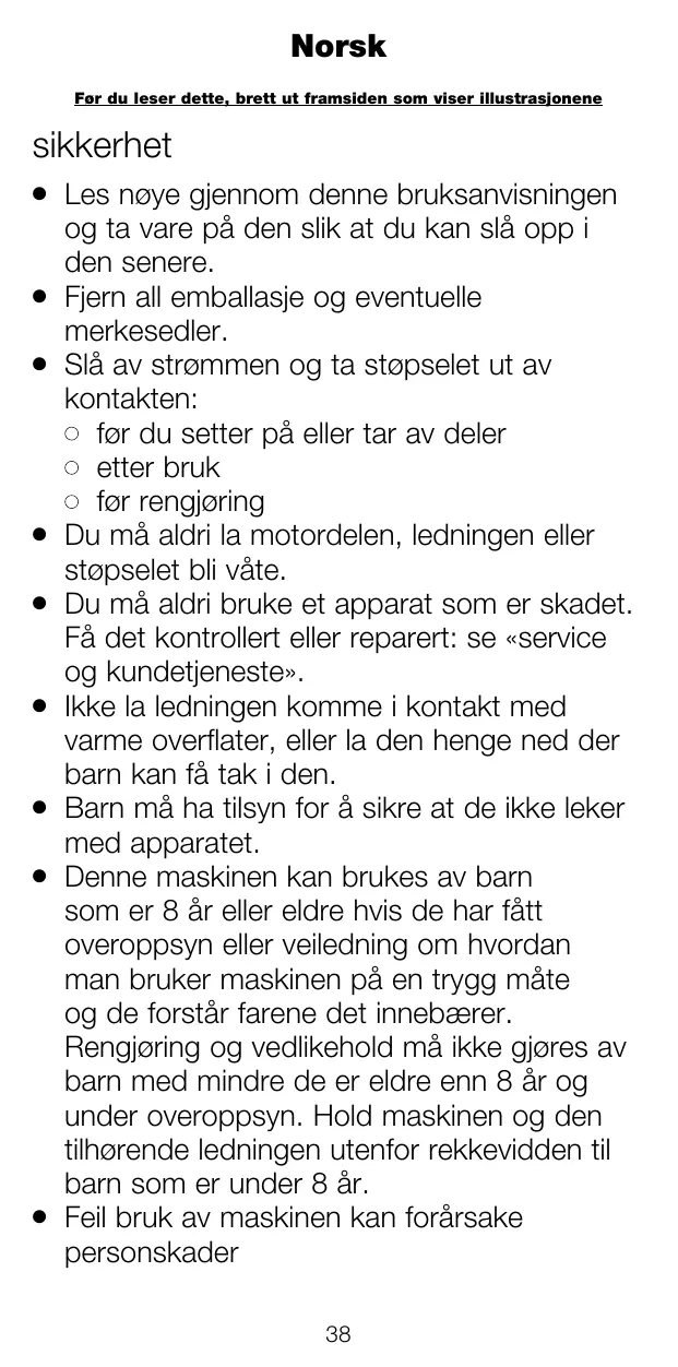 Este aparato puede ser utilizado por niños a partir de los 8 años de edad si han recibido instrucciones o supervisión en relación con el uso del aparato de forma segura y si entienden los peligros que ello implica. La limpieza y el mantenimiento del aparato no deben ser realizados por niños a menos que sean mayores de 8 años de edad y reciban la supervisión de un adulto. Mantenga el aparato y su cable fuera del alcance de los niños menores de 8 años de edad. El uso incorrecto de su aparato puede producir lesiones.