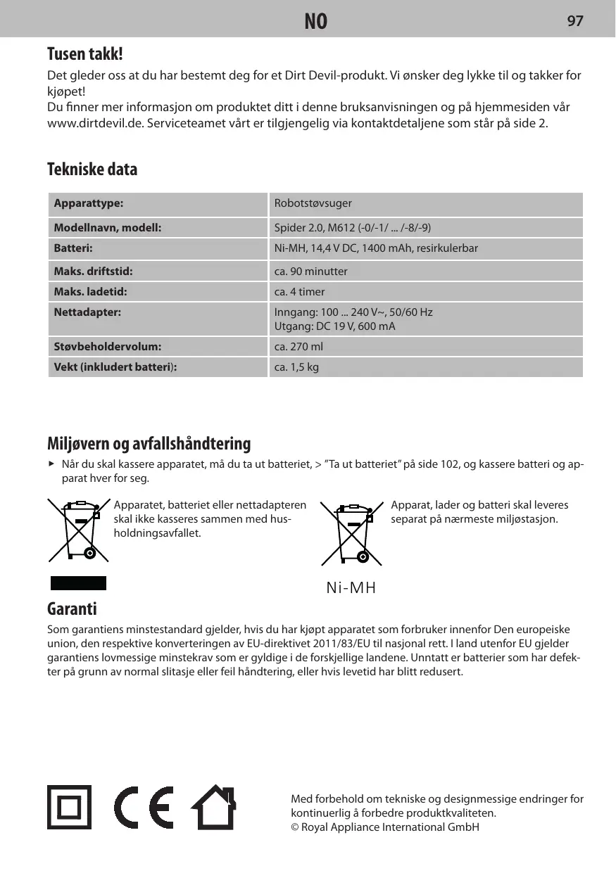 Téléchargez la notice de votre Støvsuger au format PDF gratuitement ! Retrouvez votre notice SPIDER 2,0 TRACKER M613 - DIRT DEVIL et reprennez votre appareil électronique en main. Sur cette page sont publiés tous les documents nécessaires à l'utilisation de votre appareil SPIDER 2,0 TRACKER M613 de la marque DIRT DEVIL.