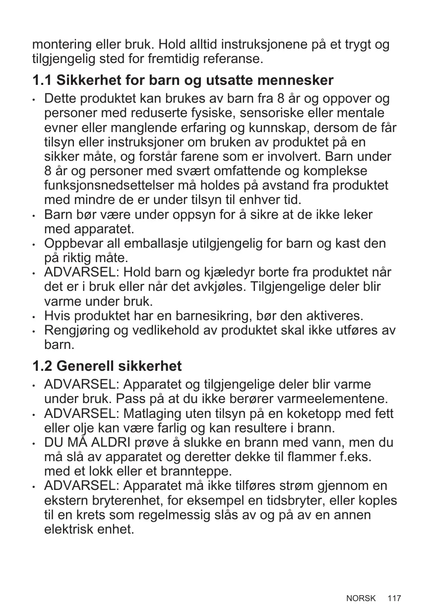 1. INFORMATIONS DE SÉCURITÉ73 2. CONSIGNES DE SÉCURITÉ76 3. INSTALLATION78 4. DESCRIPTION DE L'APPAREIL 80 5. UTILISATION QUOTIDIENNE 81 Ne laissez pas les emballages à la portée des enfants et jetez-les convenablement. AVERTISSEMENT : tenez les enfants et les animaux éloignés de l'appareil lorsqu'il est en cours de fonctionnement ou lorsqu'il refroidit. Les parties accessibles deviennent chaudes en cours d'utilisation. Si l'appareil est équipé d'un dispositif de sécurité enfants, nous vous recommandons de l'activer. Le nettoyage et l'entretien par l'usager ne doivent pas être effectués par des enfants sans surveillance.