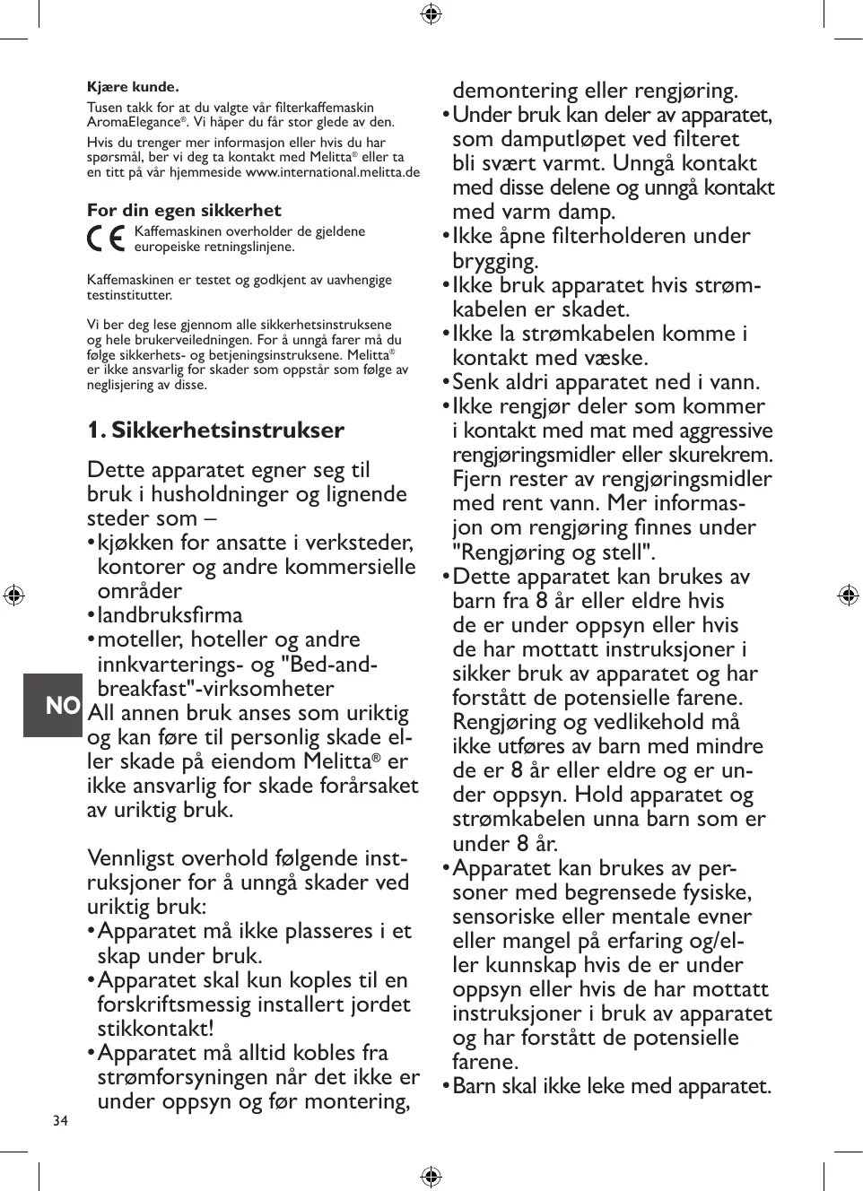 BRUKSANVISNING AROMA ELEGANCE THERM DELUXE MELITTA