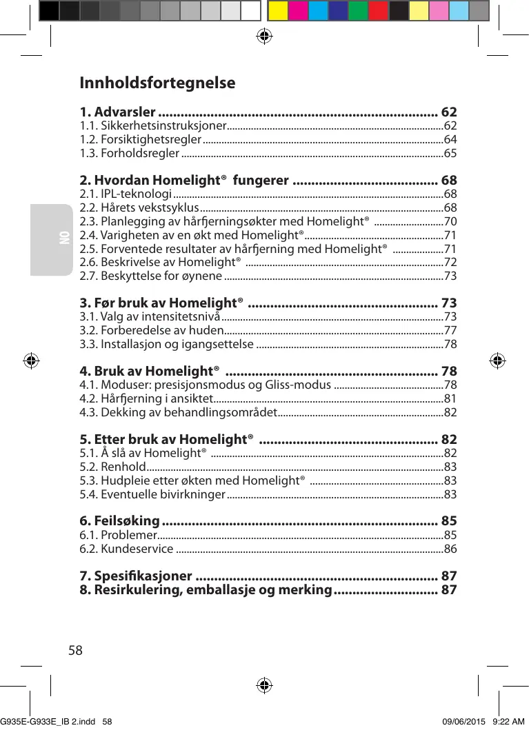 5. Après l’utilisation de Homelight® ���������������������������������������25