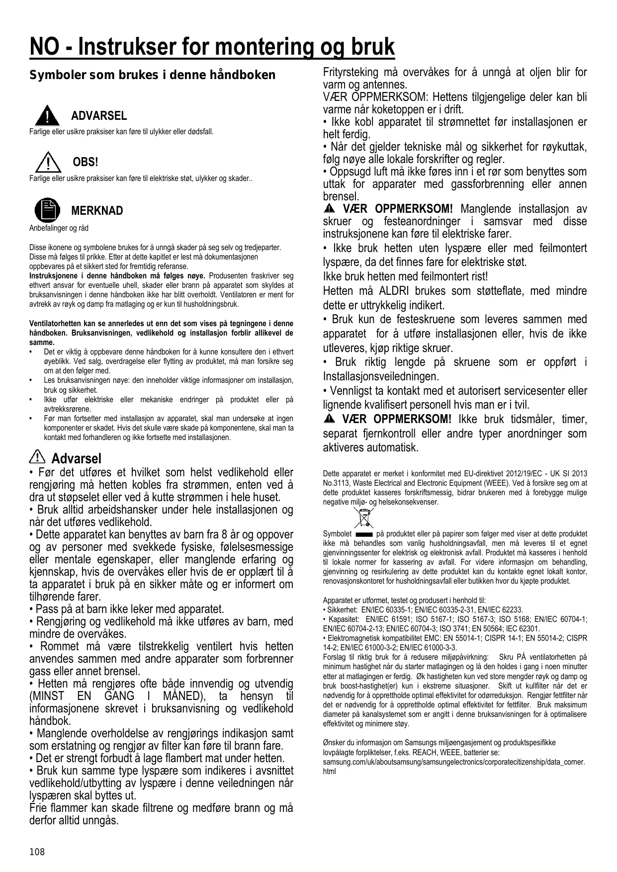NK24N9804VB - Kjøkkenhette SAMSUNG - Notice d'utilisation et mode d'emploi gratuit