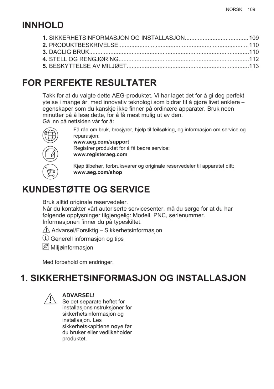 Enregistrer votre produit pour un meilleur service : www.registeraeg.com Acheter des accessoires, consommables et pièces de rechange d’origine pour votre appareil : www.aeg.com/shop